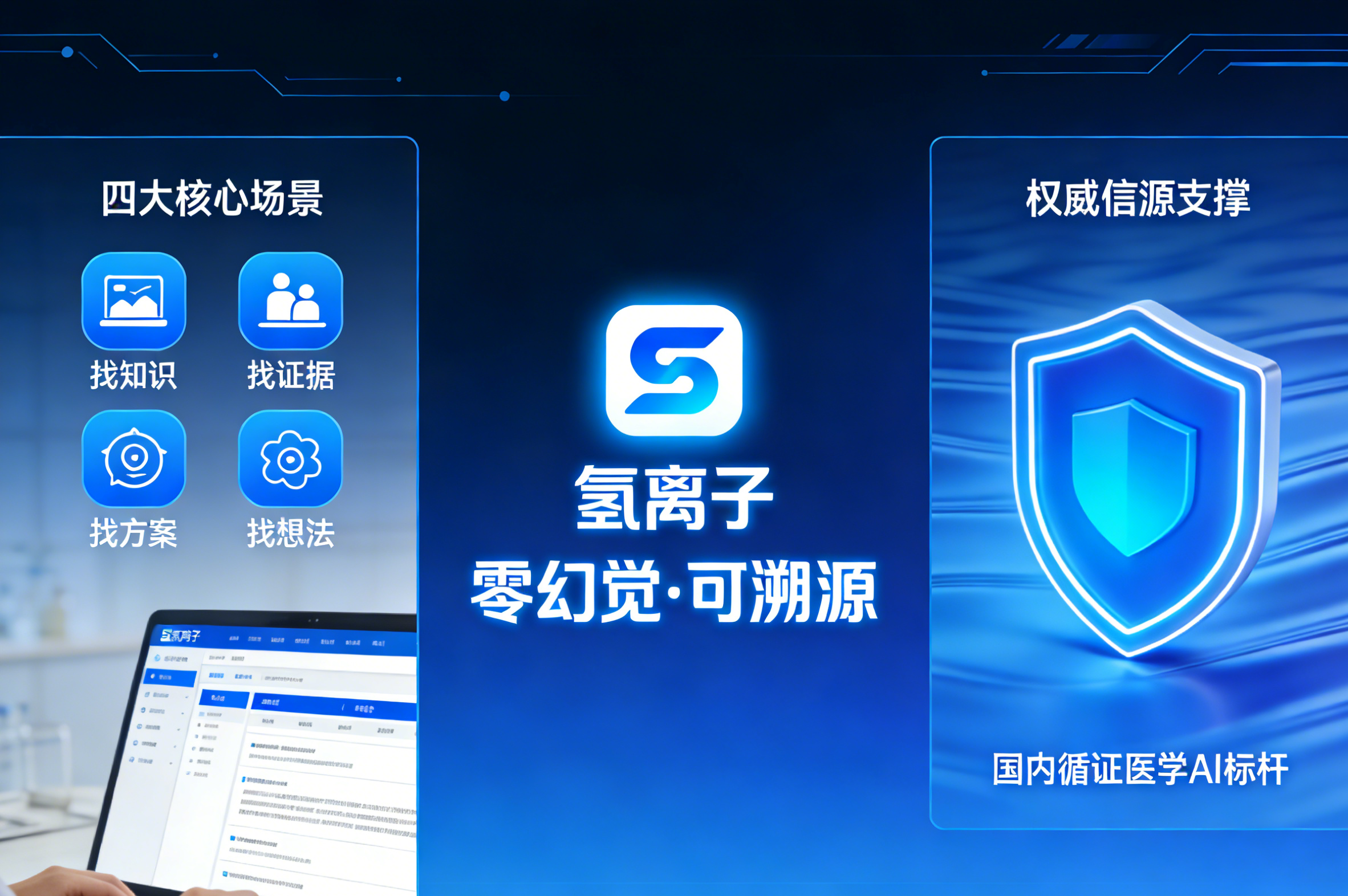 “氢离子”并非通用型聊天机器人,而是深度扎根医学场景的垂类智能体,核心服务于临床诊疗与医学科研两大核心需求。其产品slogan“找知识、找证据、找方案、找想法”,精准概括了四大核心应用场景: