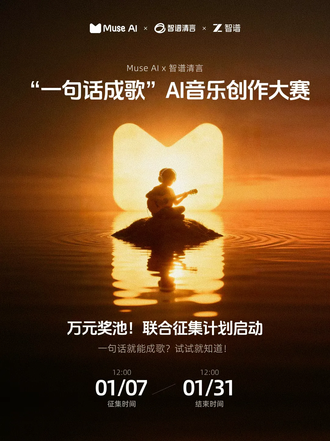 Muse AI × 智谱清言“一句话成歌” AI音乐创作大赛,万元奖池,联合征集计划启动,一句话就能成歌?试试就知道!