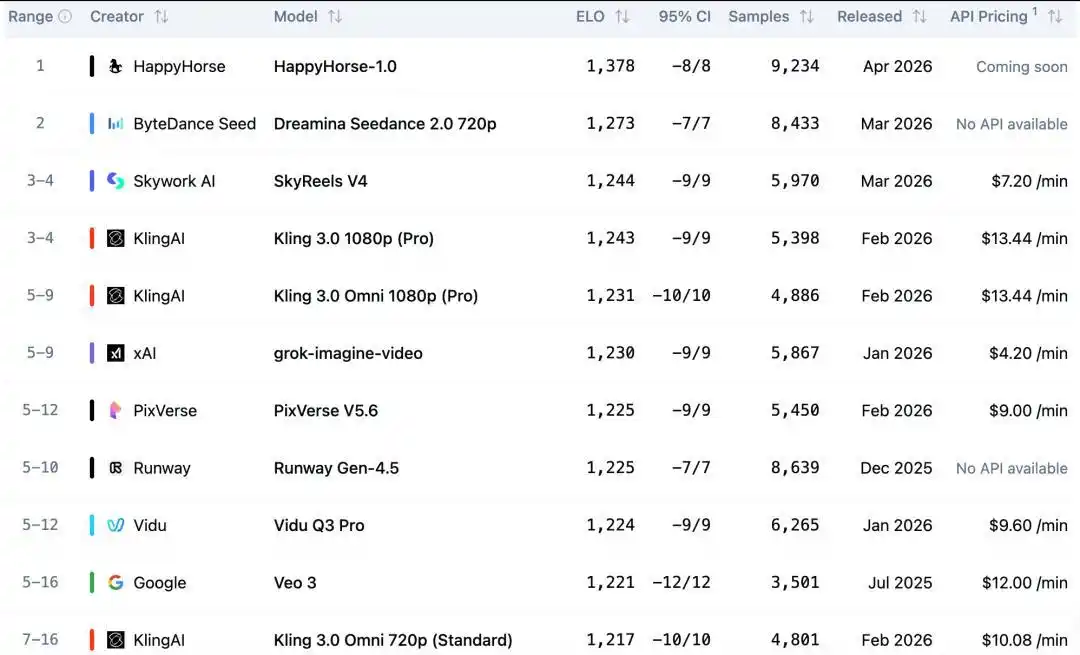 阿里happyhorse-1.0斩获LM Arena视频编辑全球冠军:国产模型首次登顶该榜单