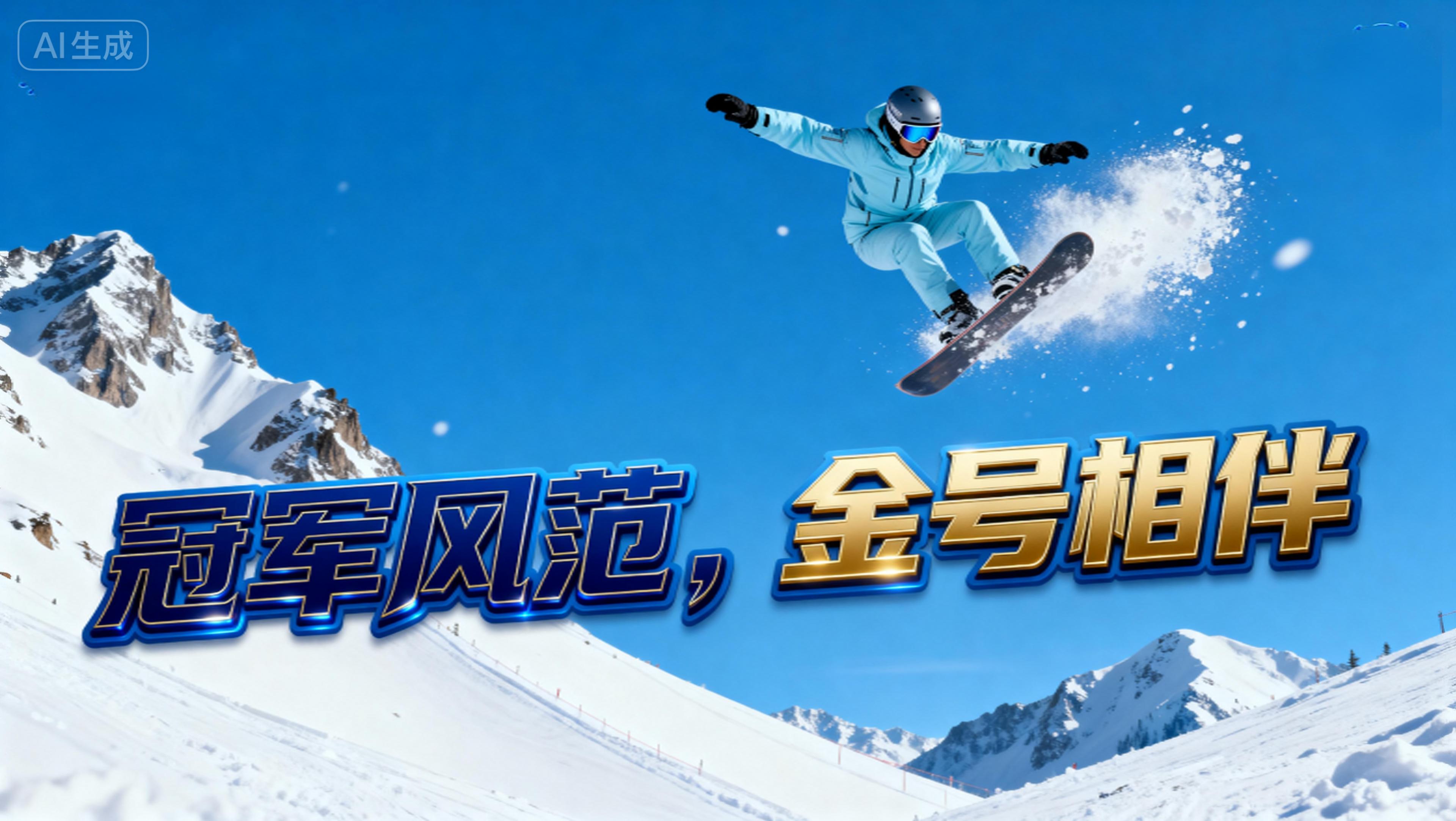讲述一个滑雪运动员从山顶下滑,获得冠军的故事,伴随金号毛巾,精神契合,永攀高峰
