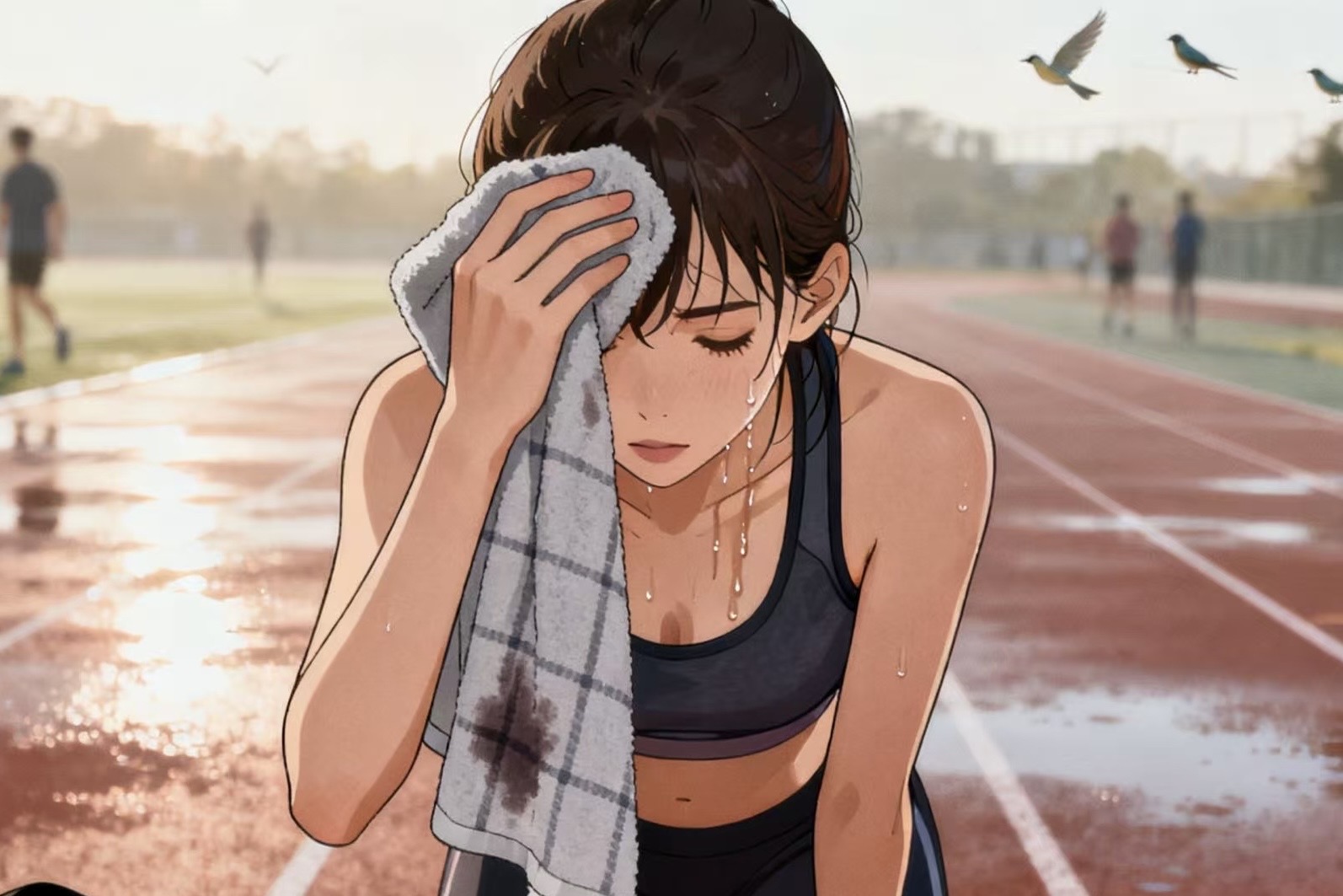 绿茵场上,足球运动员趁着间歇拿起毛巾擦拭额头与脸颊的汗水,阳光洒在球衣上,每一滴汗珠都折射着拼搏的热忱,简单的动作尽显赛场热血与运动张力。