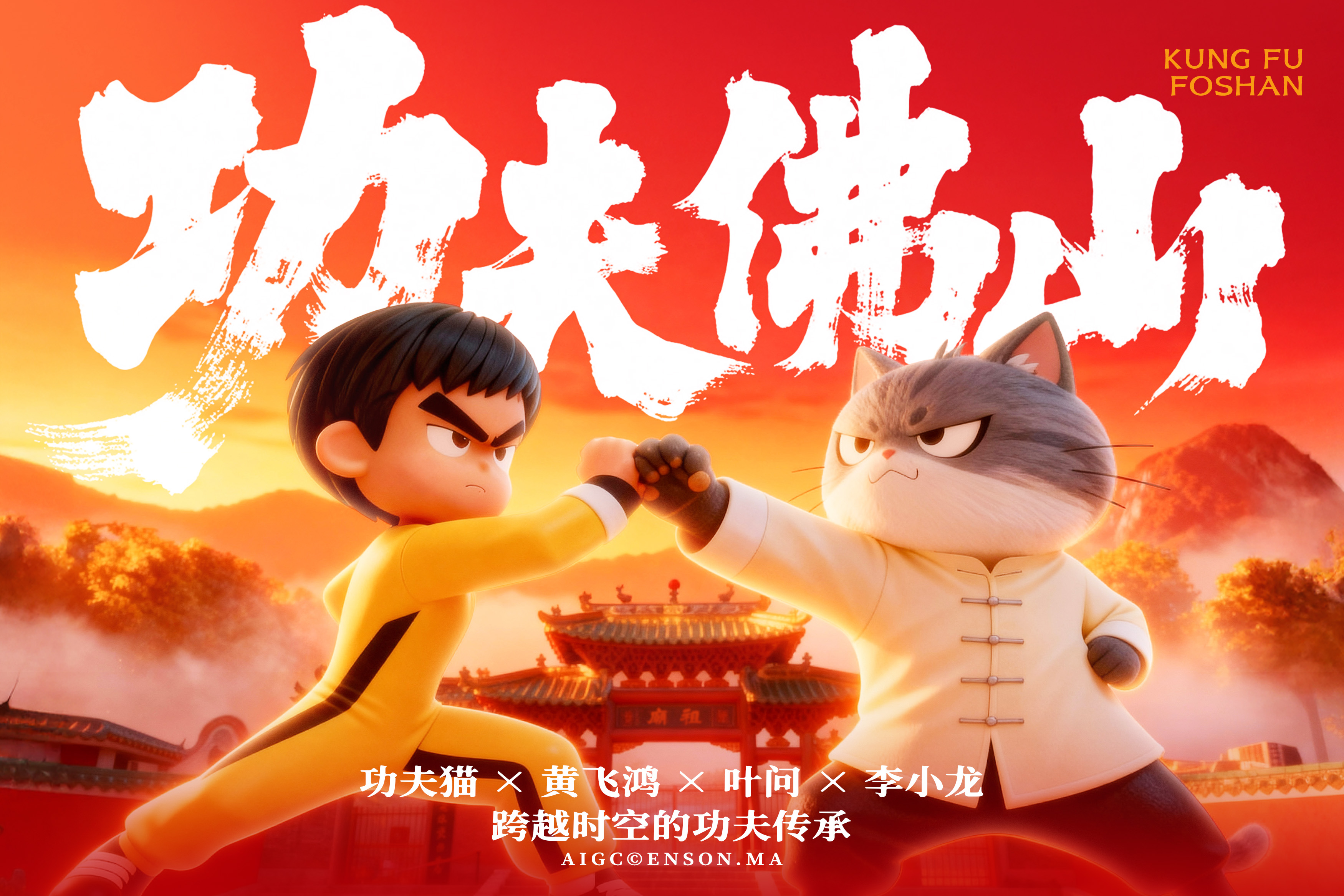当千年的文明被月色点亮,那些刻在血脉里的文化图腾,便在这无垠的舞台上开启了一场跨越维度的盛大演武。在这里,“功夫”早已超越了拳脚的博弈,它是岭南人对万物极致求索的代名词——是一盏功夫茶里对火候的拿捏,是方寸剪纸间对光影的雕琢,更是英歌舞槌里激荡的豪情。醒狮的怒目复刻了黄飞鸿狮步的沉稳;粤剧的唱腔穿越现代都市,回响着叶问咏春听桥的静气;视频歌曲配乐与画面皆采用AI生成。