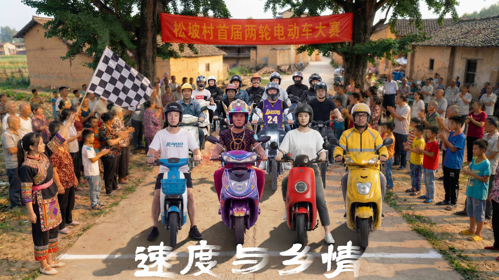 这是一场乡村两轮电动车TT比赛,速度与乡情的乡土奏鸣,在赛车的同时也展示出了中国乡村的景色与风情,主人公外卖哥在赛场上驾驶战损版电动车,与各显神通的对手们展开斗智斗勇的较量,还要破解对手无赖的“大巴战术”堵截。决胜时刻,为了胜利,外卖哥利用路边架子车和瓦屋顶斜坡惊天一跃,飞檐走壁冲过终点,最终获得胜利