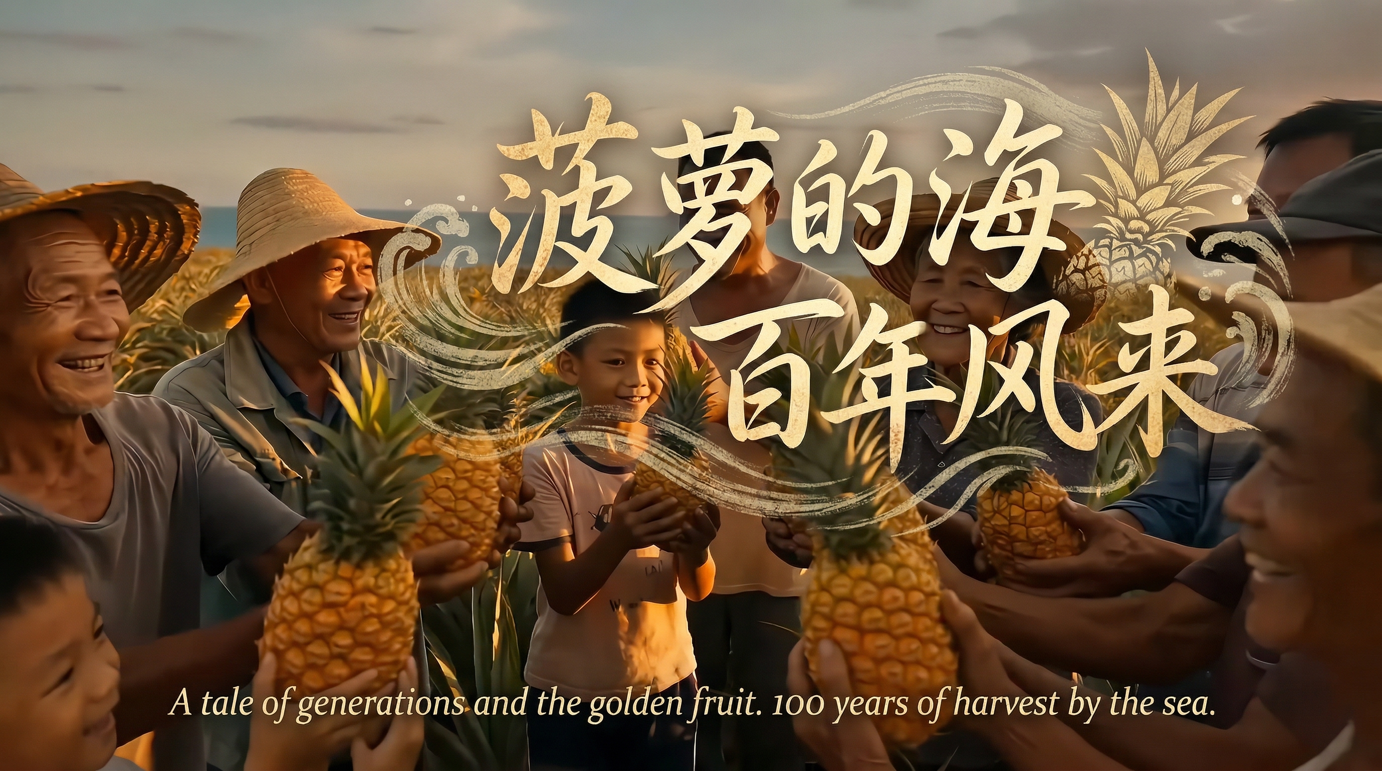 本作品以 1926 年华侨引种徐闻菠萝的百年历程为核心叙事主线,依托 AI 影像技术还原跨时代农耕场景与产业蝶变。作品以一颗菠萝的百年征途为线索,串联起远洋引种的初心、三代徐闻人的红土坚守、从手工开荒到智慧农业的时代跨越,完整呈现徐闻菠萝从零星种苗到万亩 “菠萝的海” 的产业传奇。作品以 AI 赋能地域 IP 叙事,既展现徐闻乡村振兴的鲜活实践,也传递代代相传的耕耘坚守与向新而行的时代精神。