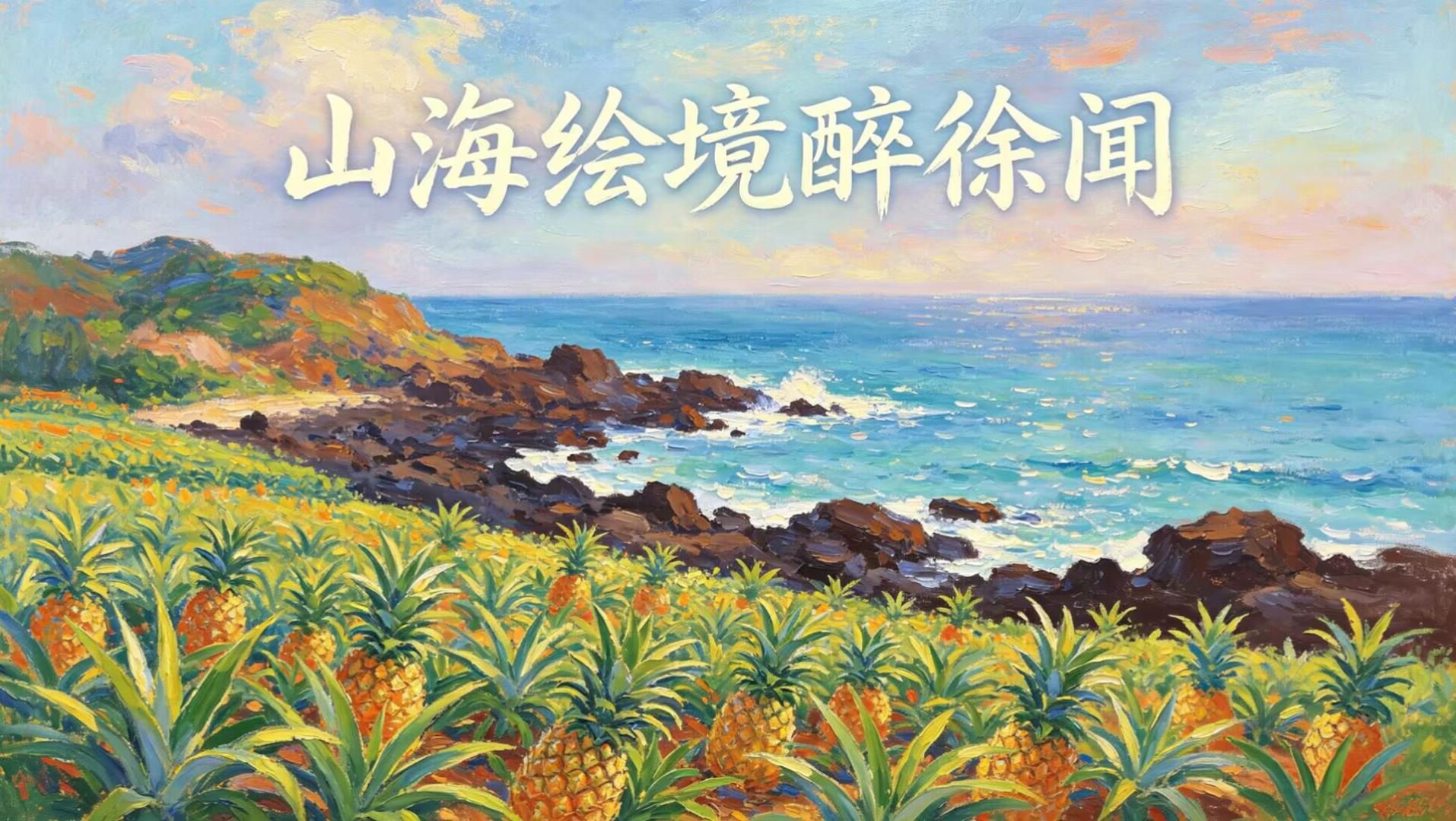以莫奈印象派温柔笔触,描摹徐闻独有的山海风光与红土风情。万亩菠萝田随风起伏,火山海岸静静矗立,古村烟火、田园暮色、山海诗意交织相融。在光影流转间,诉说红土大地的百年沉淀,邂逅徐闻自然治愈的山海之美。