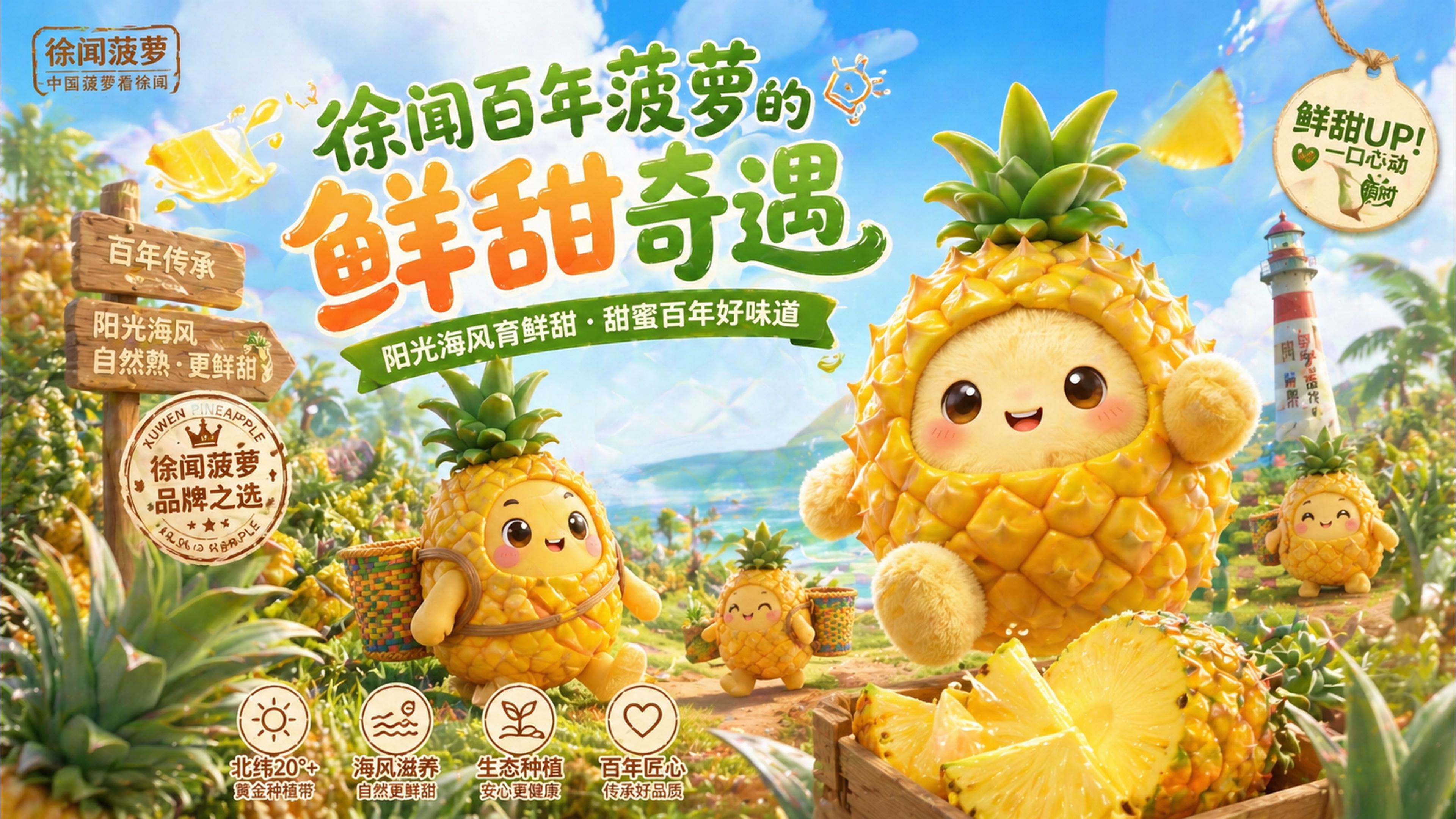 作品类型: AI 赋能人文视听史诗 / AIGC 音乐短片 导演/制片: 王怡 《菠萝的海》是一场跨越百年的时空对话。作品以中国最大的菠萝生产基地——湛江徐闻“菠萝的海”为背景,通过 AIGC 技术重构了从 1926 年爱国华侨倪国良引种回国,到 2026 年万顷金波、科技赋能的壮丽景观。