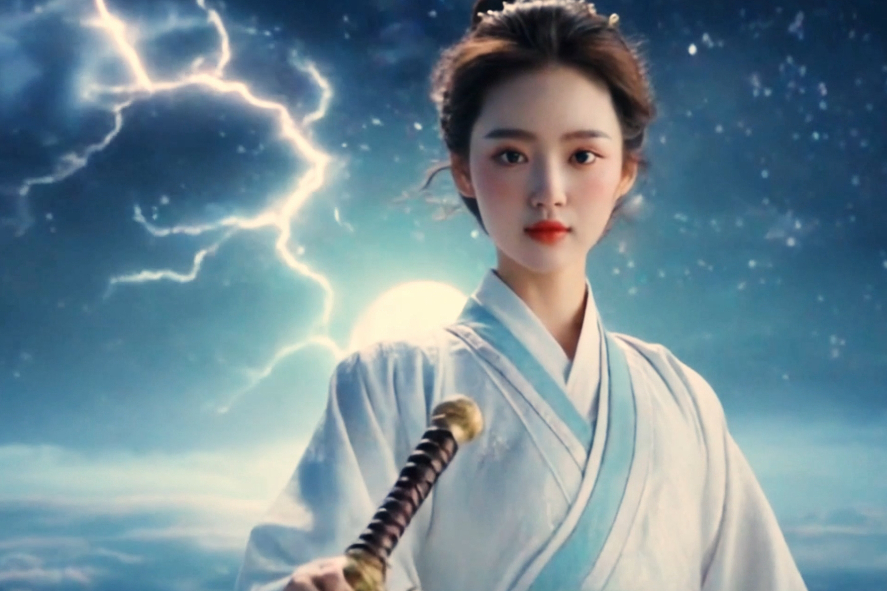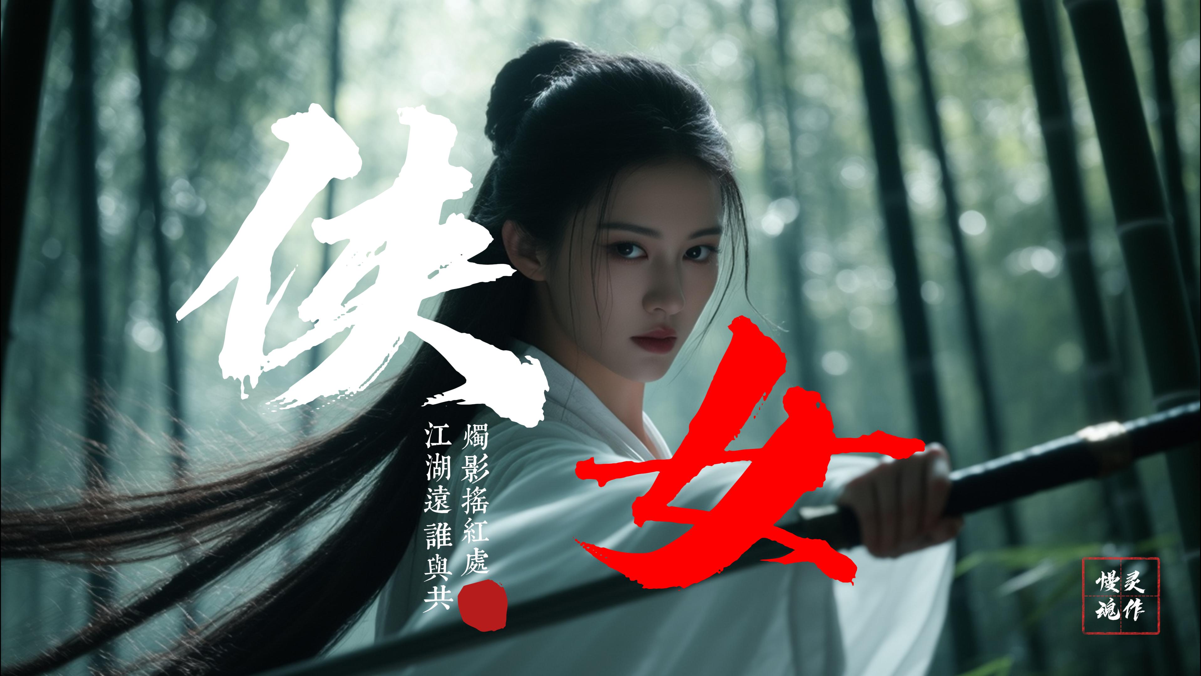 侠女拂尘,白衣惑心,烛影摇红处,江湖远,谁与共?一袭素衣擎月影,一盏残灯照孤心,《侠女》承的是血海深仇,藏的是未语柔情。  音乐部分灵感源于《聊斋志异》之《侠女》,运用AI与传统音乐制作工具,将古典韵律与现代元素融合为一首侠女心曲:箫声咽咽,诉尽隐忍苍凉,弦乐铮鸣,乍起快意恩仇;视觉画面运用AI让侠女穿梭于水墨江湖:血月下剑光惊鸿,枯林中诀别回眸,夜幕尽头的孤寂与快意恩仇相互交织。