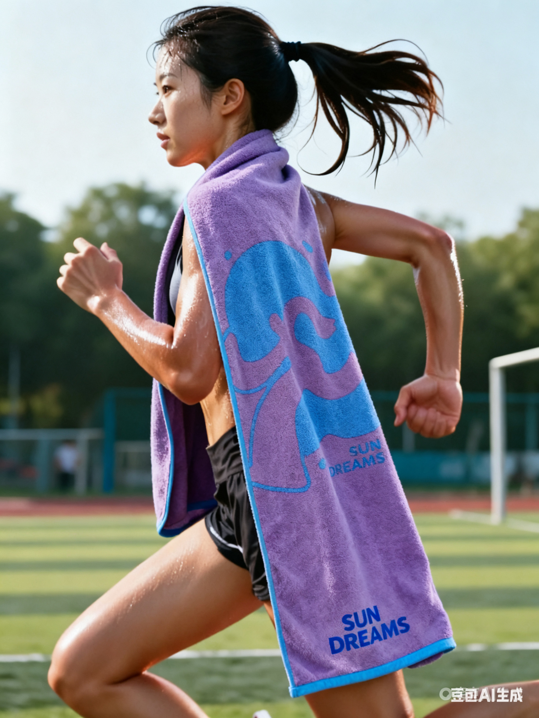 你敢信?我夜跑后用来擦汗的毛巾,竟然带我穿越了!它是无限延伸的彩虹跑道,是体操女孩向往夕阳的阶梯!也为奔跑的男孩提供了温暖鼓励!  运动的高光时刻,不只在奥运赛场,更在我们每一次坚持的平凡日常里。那条陪你流汗、给你安慰的毛巾,就是你的第一个冠军奖杯!  在用AI畅想的运动奇景里,有着各种美妙奇幻的世界。