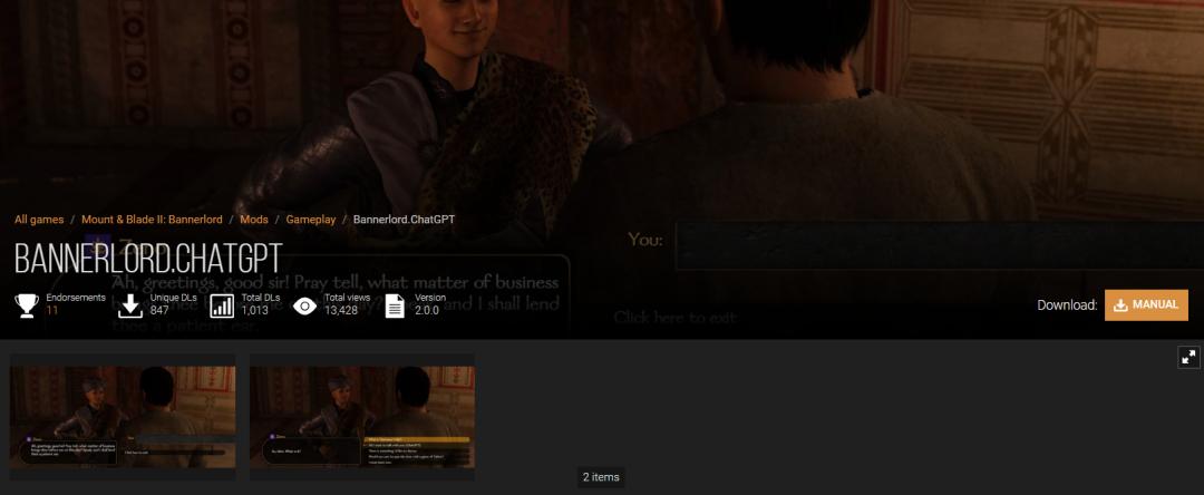 早在2023年初,便有玩家试着为《骑马与砍杀2》制作了ChatGPT MOD,游戏里的角色不仅在回答玩家问题时能准确说出自己所在村庄、领主和国家的名字,更是能对一系列中世纪知识对答如流。