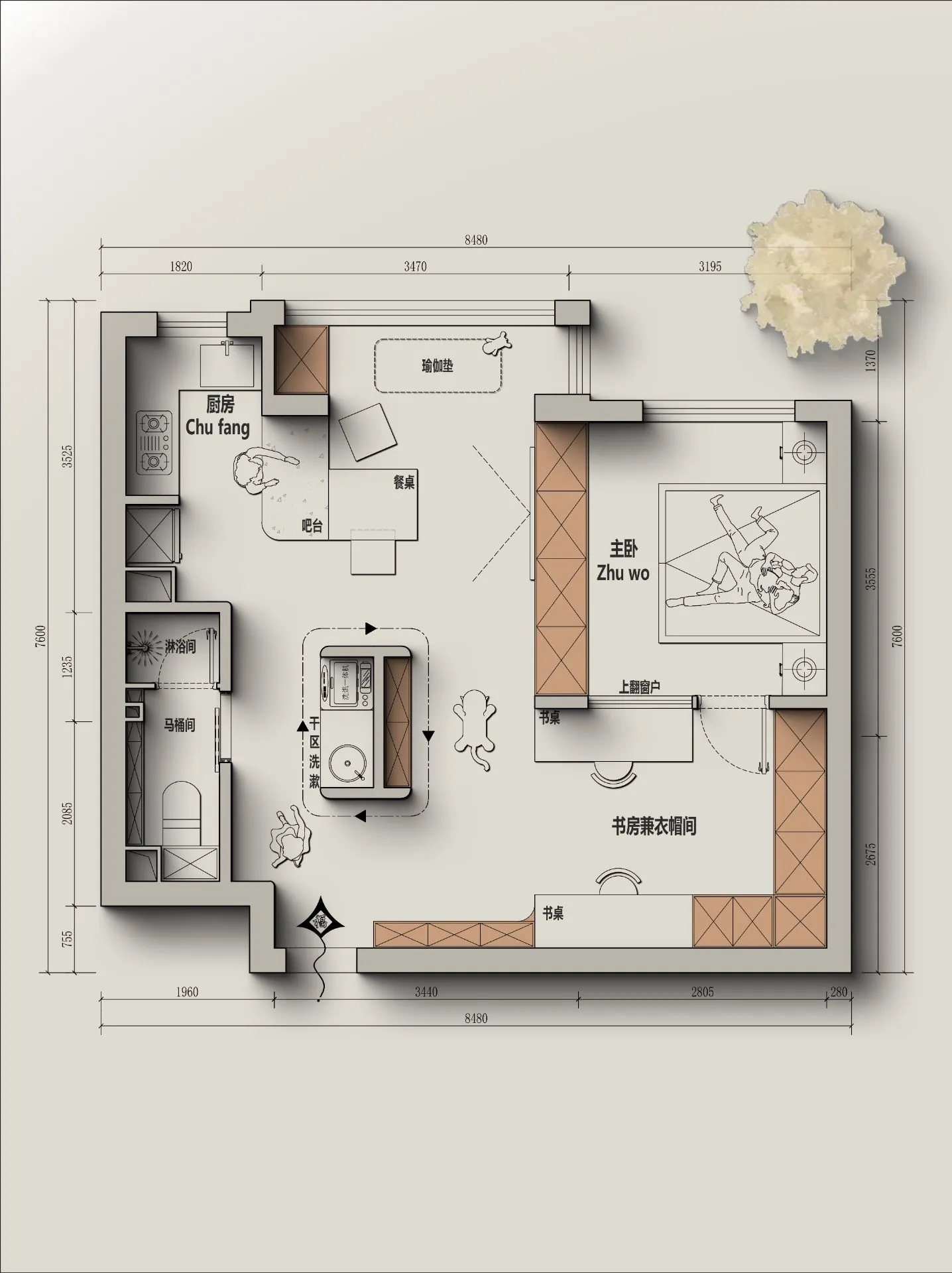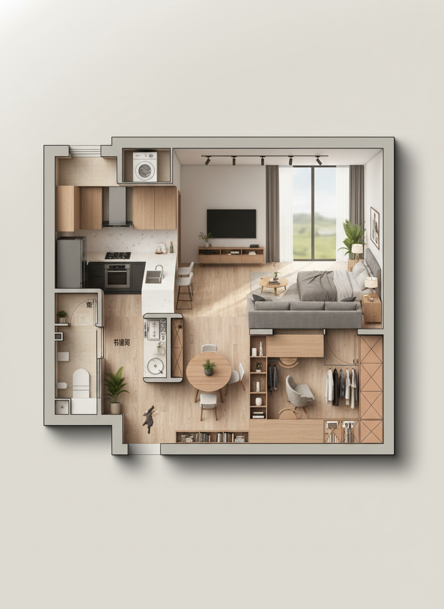 上传房屋平面图后,Nano Banana 会基于空间逻辑生成符合透视的场景。