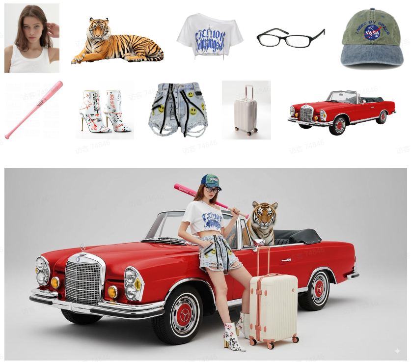 传统 PS 图层合并需手动调整光影,Nano Banana 能自动计算融合逻辑。