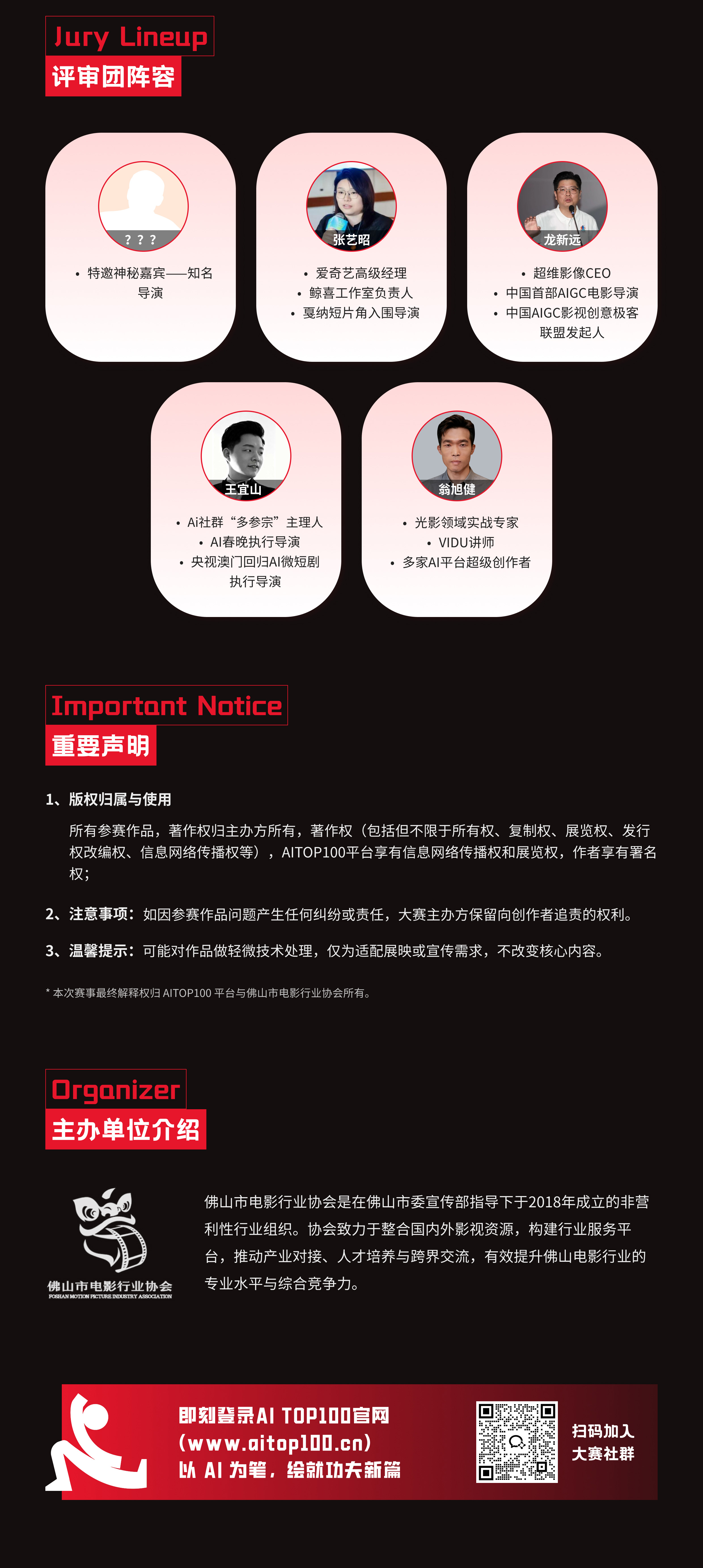 *本次赛事最终解释权归AITOP100平台与佛山市电影行业协会所有。