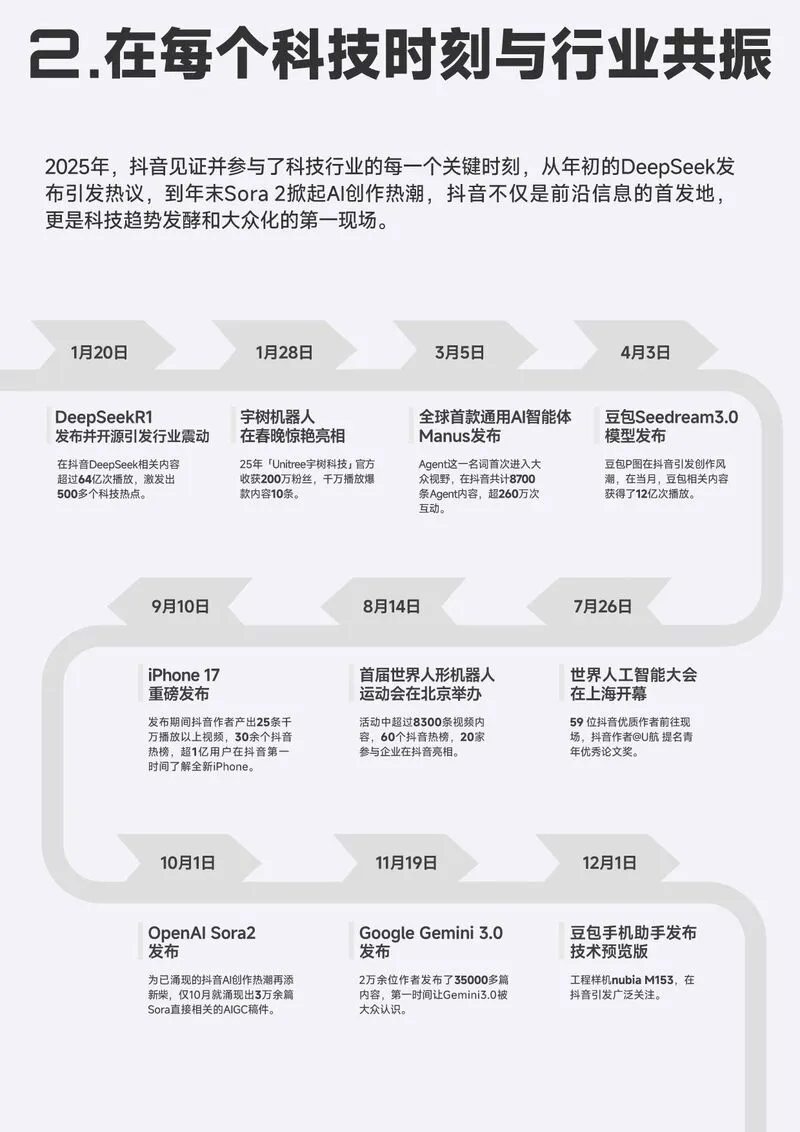 未来,随着抖音在 “全球科技盛会探访”“大国重器计划” 等项目的推进,科技内容生态将进一步向 “深度化、全球化、实用化” 发展,持续为AI行业动态与 AI 工具创新提供传播与实践土壤。