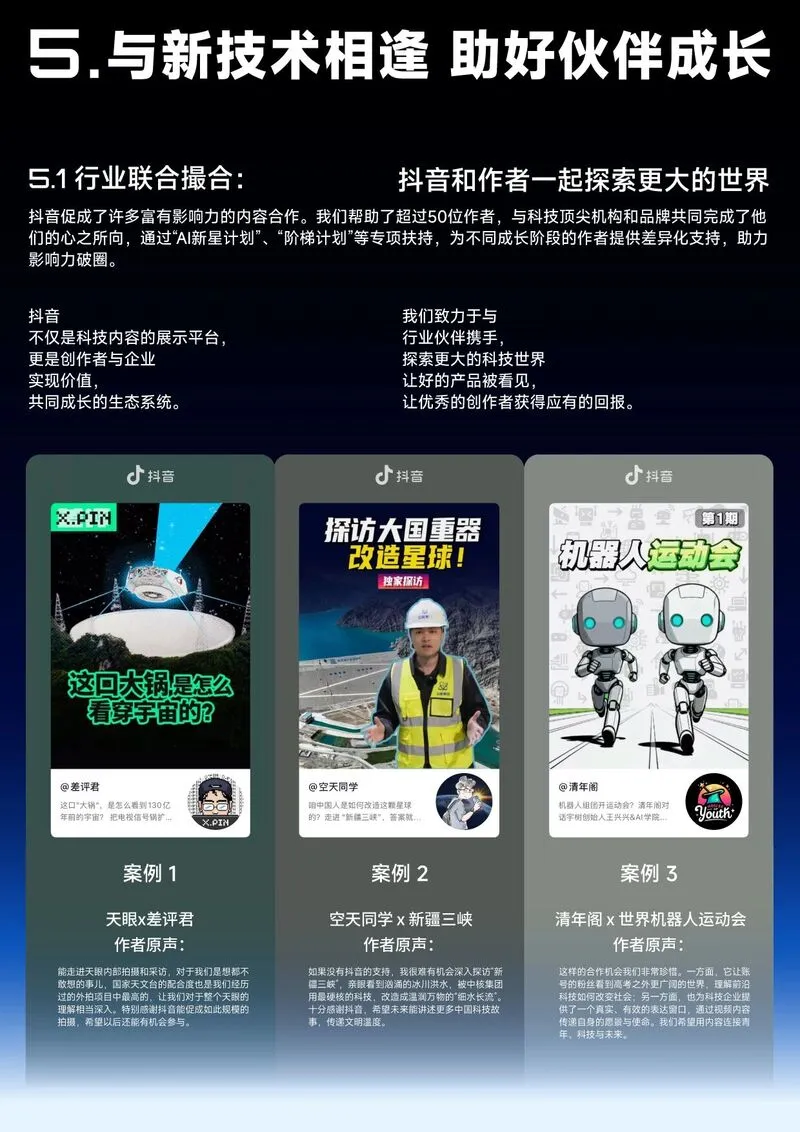 抖音通过内容创作手法创新与专项扶持计划,为科技创作者提供成长与变现双支撑: