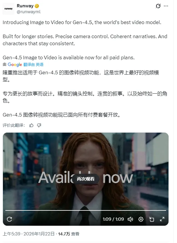 Runway Gen-4.5 的 Image-to-Video 更新,精准地切中了专业视频创作者的核心痛点:长故事、精准镜头、一致角色。这标志着 AI 视频工具正加速融入主流影视制作的工作流中。对于创作者而言,现在正是尝试将 AI 辅助镜头引入实际项目的最佳时机,建议密切关注后续的参数开放与官方示例片库的更新。
