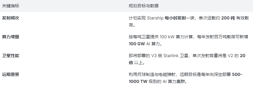 为实现这一愿景,SpaceX 公布了一系列关键工程目标与数据: