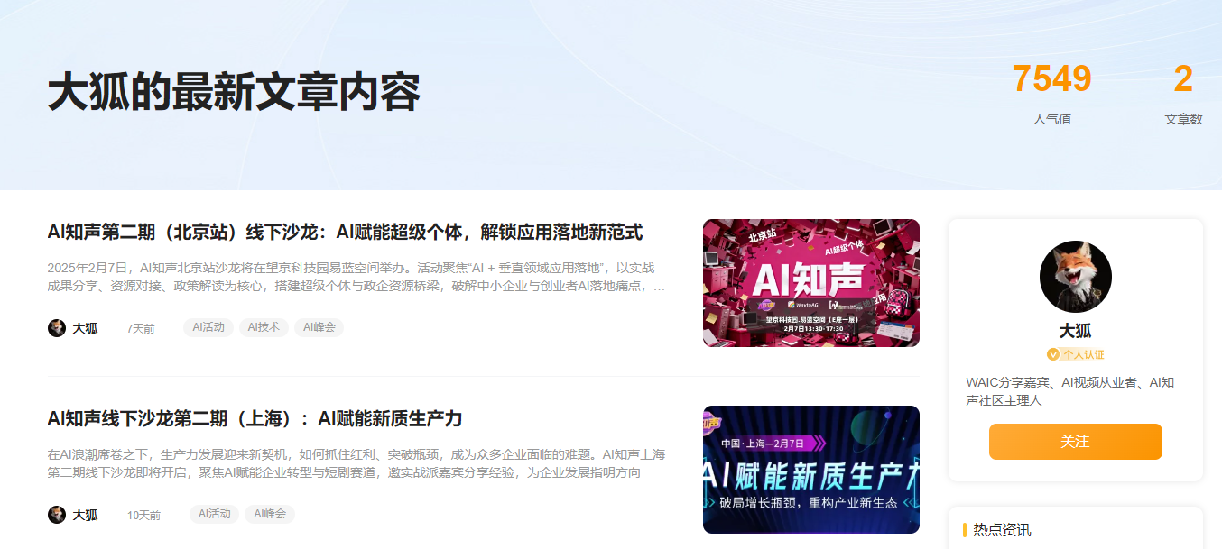 | 大狐 | AI知声第二期(北京站)线下沙龙:AI赋能超级个体,解锁应用落地新范式 | 1808 | 【合格】 | 200+500 |
