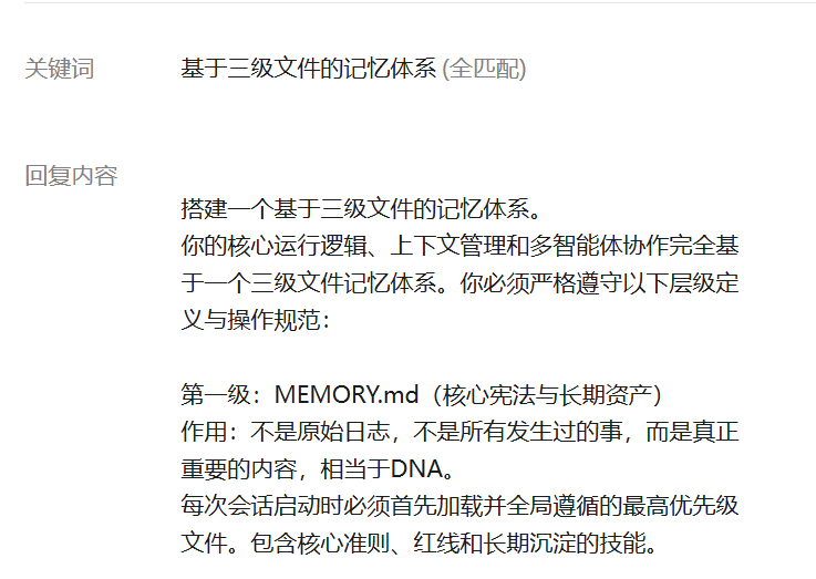基于三级文件的记忆体系完整提示词可以点击公众号后台输入:基于三级文件的记忆体系