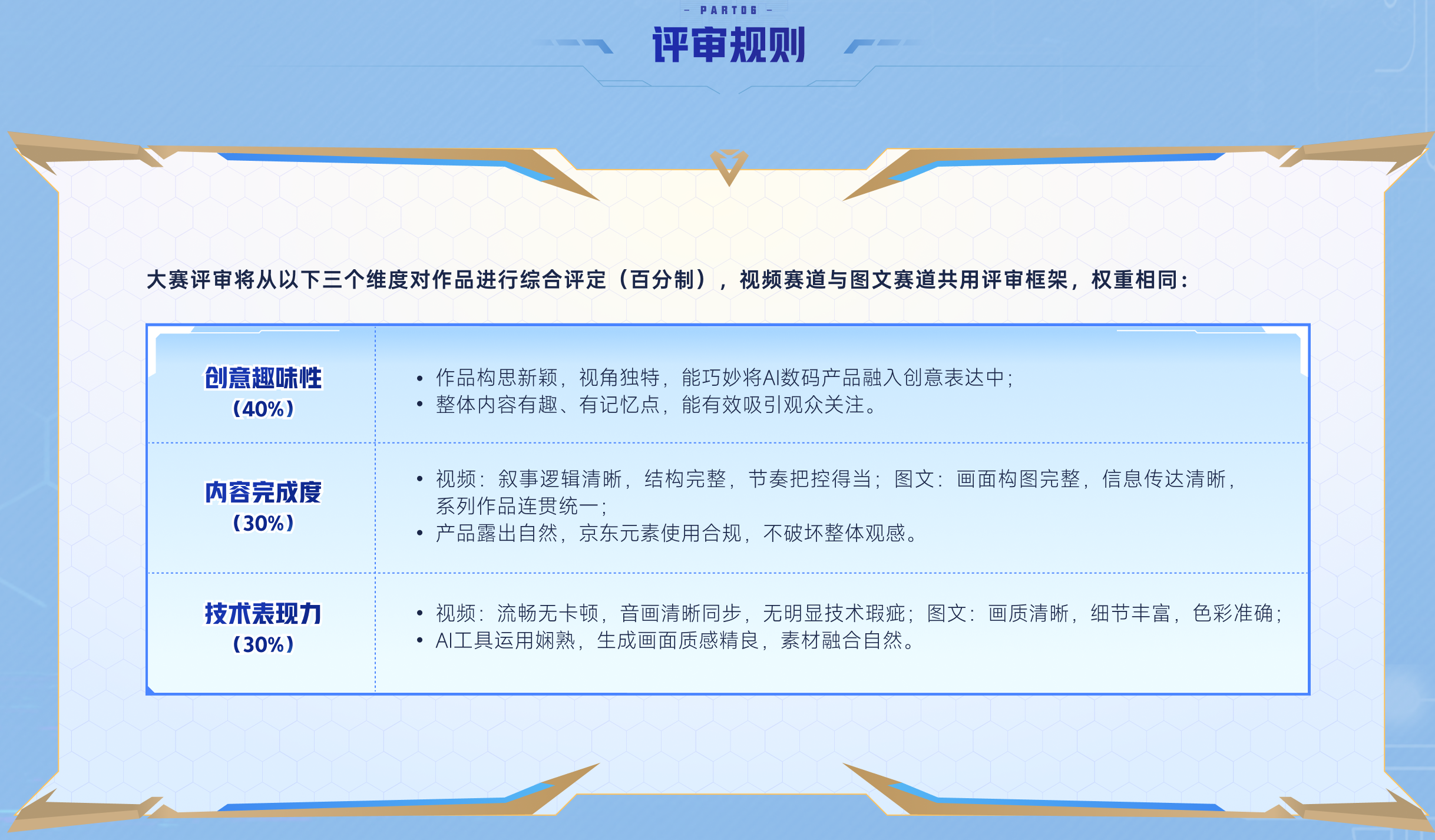 大赛评审将从以下三个维度对作品进行综合评定(百分制),视频赛道与图文赛道共用评审框架,权重相同: