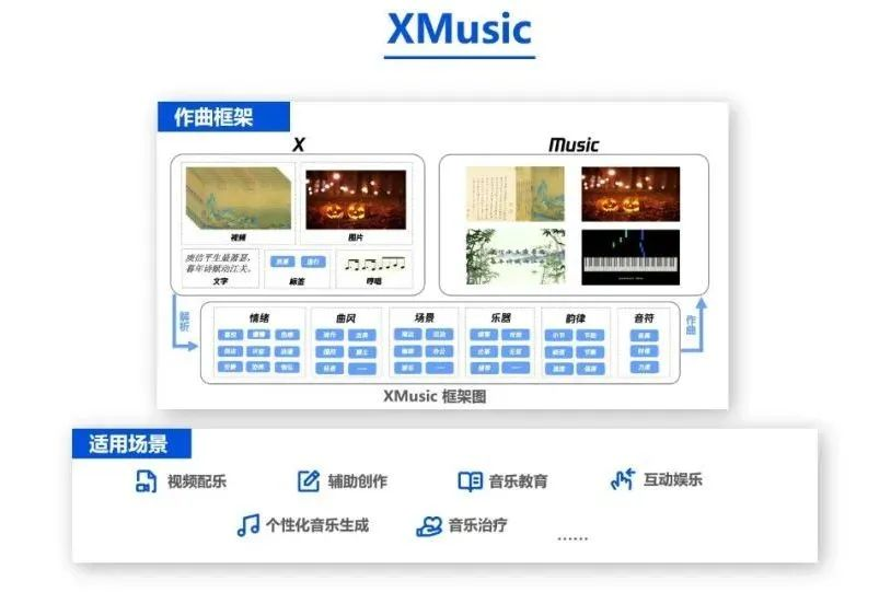 光锥智能逛展过程中发现,相比于年初,市面上内容生成的类型变得丰富了起来。文生图几乎是各家的标配,除此之外,更多维度的多模态能力越来越完善。比如,腾讯利用文生音频技术,在音乐创作领域推出了XMusic生成式通用作曲框架。