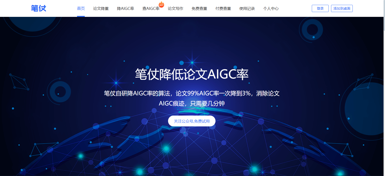 笔仗是湖南正合元信息科技有限公司旗下、国内最早一批专注“AI 痕迹消除”与“论文重复率降低”的智能平台。依托自研深度语义模型与百亿级中文语料库,笔仗为高校师生、科研工作者、媒体编辑、企业内容团队提供“查AIGC率 → 降AIGC率 → 降传统重复率 → 再次验证”一站式闭环服务,最快3分钟可将99%的AI痕迹降至3%以内,同时将总重复率压到10%以下,并保持原文逻辑、格式与学术规范不变。