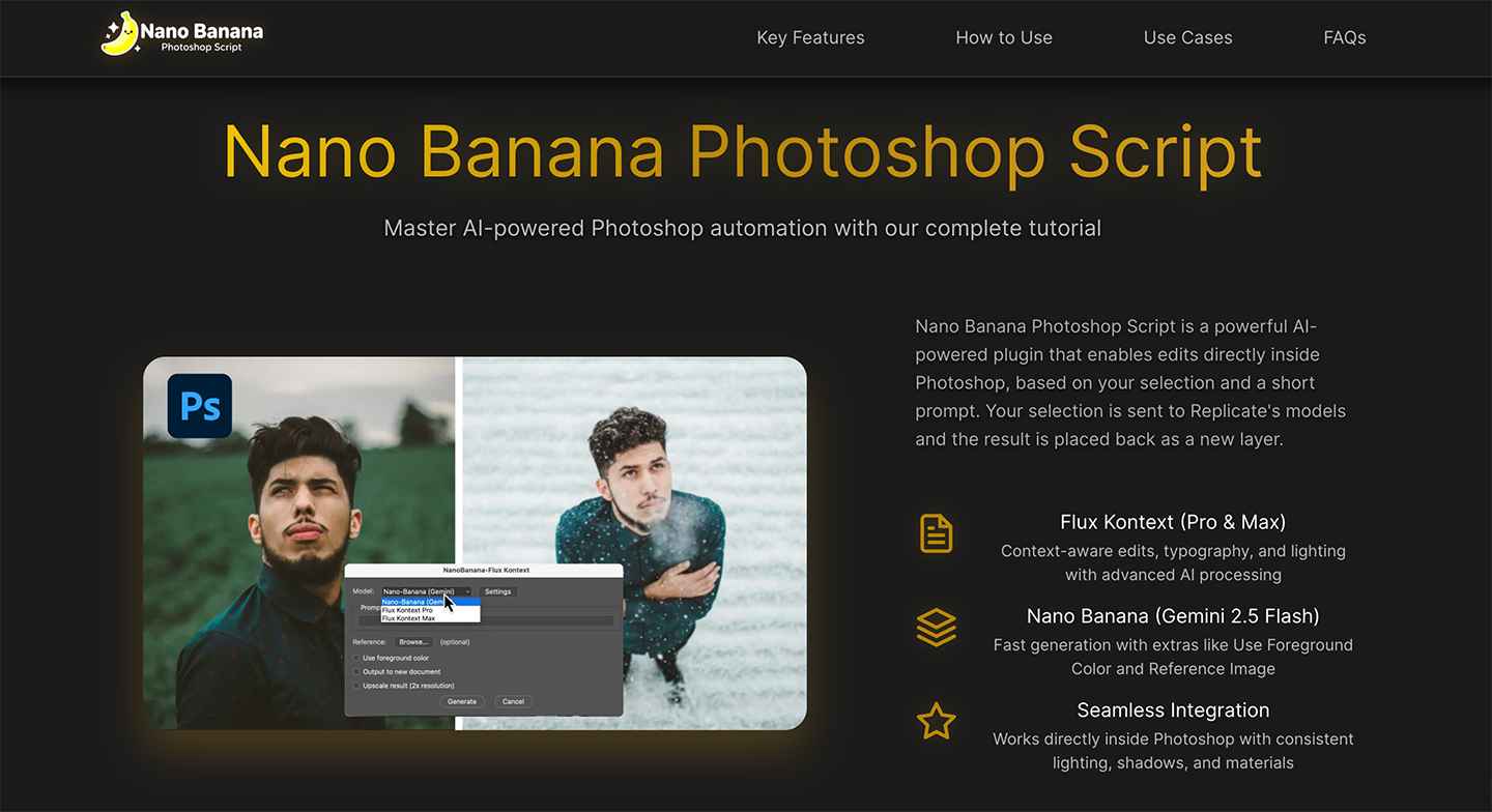 Nano-Banana-Flux-Kontext.jsx→ 放进Presets/Scripts/→ 重启 Photoshop。